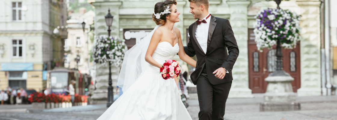 Newlyweds outside after wedding